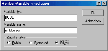 Das zweite Argument an diese Funktion gibt die Position der Maus an. Dieses Argument enthält die Bildschirmkoordinaten der aktuellen Mausposition. Mit Hilfe dieser Angaben läßt sich ein Punkt im Dialogfenster zeichnen.