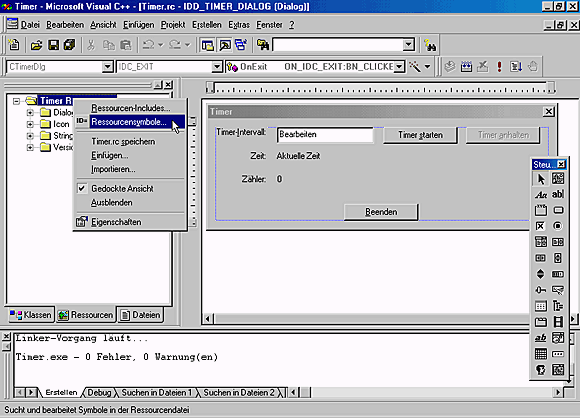 5. Klicken Sie auf die Schaltfläche Schliessen, um das Dialogfeld Ressourcensymbole zu schließen. Die beiden Timer-IDs gehören nun zu Ihrer Anwendung und warten auf ihren Einsatz.