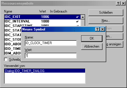3. Im Dialogfeld Neues Symbol geben Sie ID_CLOCK_TIMER