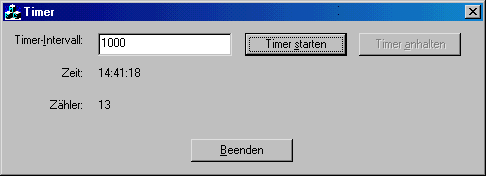 Fall wird das Timer-Ereignis alle 1000 Millisekunden, d.h. jede Sekunde, ausgelöst.