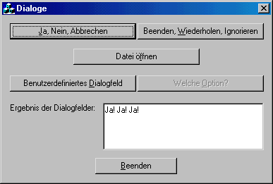 12: iResults = MessageBox("Ja, Nein oder Abbrechen drücken",