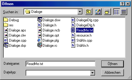 Die Klasse CFileDialog verfügt über eine öffentliche (public) Eigenschaft namens