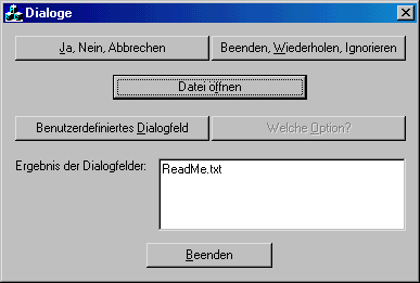 14: // Dialogfeld Öffnen anzeigen und Ergebnis auffangen