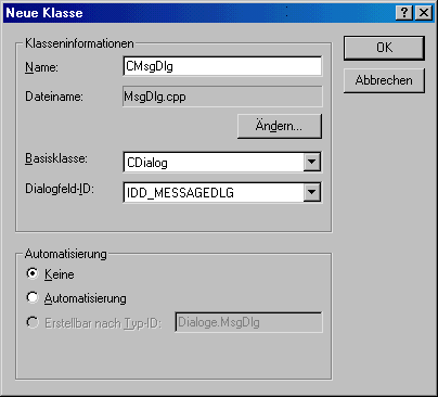in der Anwendung bestimmen läßt. Nehmen Sie mit dem Klassen-Assistenten eine