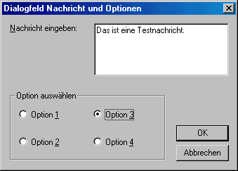 Die im benutzerdefinierten Dialogfeld gewählte Option wird dem Benutzer angezeigt.