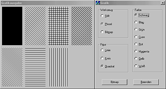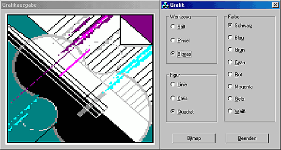 2. Mit welchem Instrument zeichnet man in ein Fenster, ohne daß man die vom Benutzer eingesetzte Grafikkarte kennen muß?