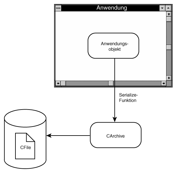 Die Klasse CArchive speichert Anwendungsdaten in einem CFile-Objekt.