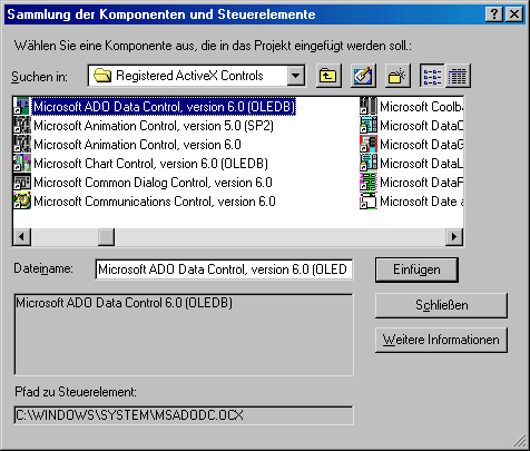 Das ActiveX-Steuerelement ADO in ein Projekt aufnehmen