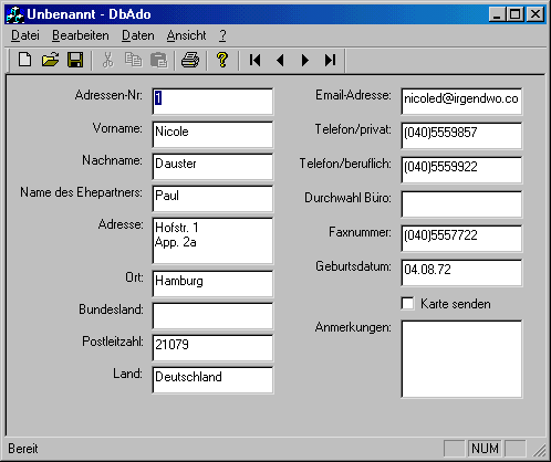 des Datenbankzugriffs üblich ist. Auf die einzelnen Felder eines Datensatzes