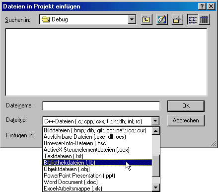teilt er Ihnen in einem Meldungsfeld mit, daß Sie die Header-Datei mit der Definition