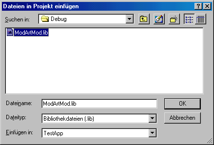 ab, so daß Sie dann zwei Bibliotheksmodule und nicht nur ein Modul haben. Linken