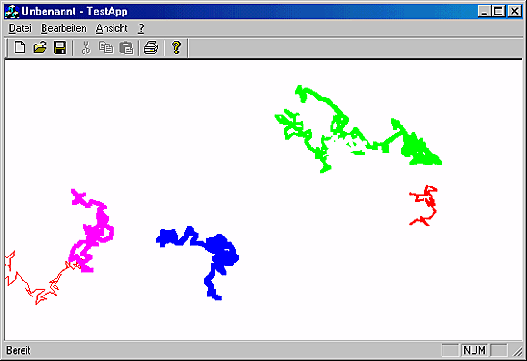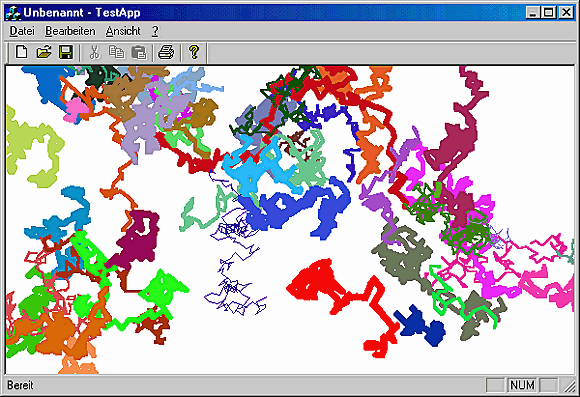 Um eine Vorstellung davon zu bekommen, wie man Bibliotheksmodule verwendet, erstellen Sie heute ein Bibliotheksmodul, verwenden es in einer anderen Anwendung und nehmen dann einige Modifikationen am Bibliotheksmodul vor. Für die heutige Beispielanwendung erstellen Sie ein Modul, das eine Zufallszeichnung im angegebenen Fensterbereich generiert. Es wird möglich sein, alle diese Zeichnungen zu speichern und wiederherzustellen. Dann verwenden Sie dieses Modul in einer SDI-Anwendung, wo immer dann, wenn man ein neues Dokument anlegt, eine neue Zeichnung generiert wird. Das anfängliche Modul verwendet nur acht Farben und erzeugt nur eine begrenzte Zahl von Linienfolgen. Später modifizieren Sie das Modul, so daß es eine beliebige Anzahl von Farben verwendet und eine größere Anzahl von Liniensequenzen generiert.