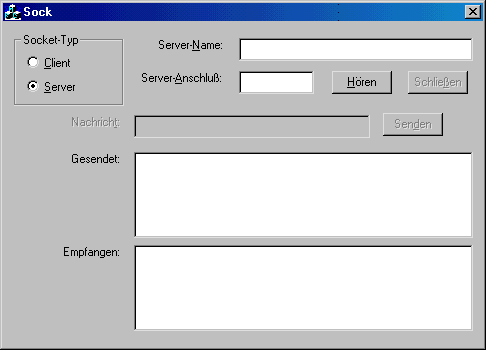 Wenn allerdings der Socket auf den Verbindungswunsch einer anderen Anwendung hören soll, um sich mit dieser Anwendung zu verbinden, und dabei - als Server - auf den Ruf wartet, dann müssen Sie zumindest die Nummer des Anschlusses übergeben, auf dem der Socket hören soll: