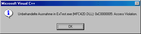 Das bekannte Dialogfeld bei Zugriffsverletzungen des Speichers