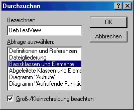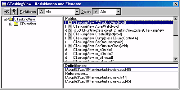 Die Ansicht der Basisklassen und Elemente des Quellcode-Browsers