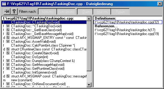 Der Quellcode-Browser zeigt hier Definitionen und Referenzen an.