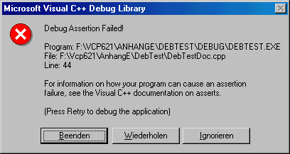 und bringt im Debug-Modus das gleiche Dialogfeld Debug Assertion Failed! auf den