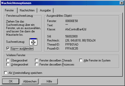 Mit den Nachrichtenoptionen von Spy++ lassen sich Fenster lokalisieren.